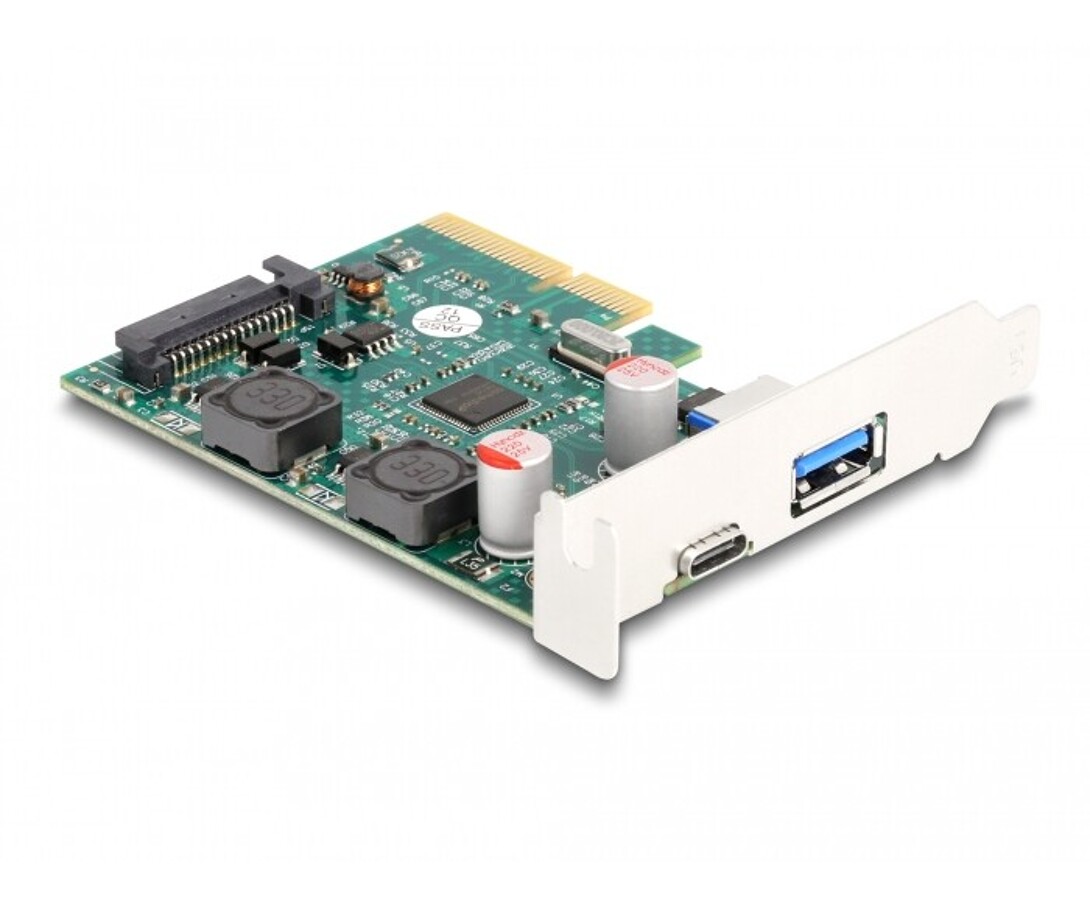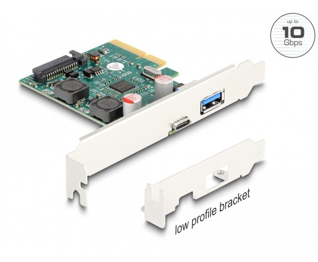 Karta PCI Express x4 do 1x zewn. USB 10Gbps typu C żeńskie + 1x zewn. USB 10Gbps typ A żeńskie, niskoprofilowa Delock 90107