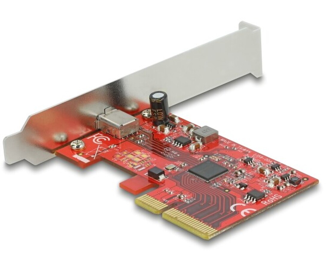 Karta PCI Express marki Delock rozszerza komputer o jeden zewnętrzny port USB 3.2 Gen 2x2 typu C, umożliwiając podłączenie nowoczesnych urządzeń o wysokich wymaganiach transferowych, takich jak stacje dokujące, czytniki kart, dyski zewnętrzne czy obudowy SSD. Dzięki chipsetowi Asmedia ASM3242 karta obsługuje transfer danych z prędkością do 20 Gb/s, gwarantując maksymalną wydajność i stabilność połączenia. Urządzenie jest w pełni zgodne ze standardami USB 3.0, 2.0 oraz 1.1, obsługuje funkcję rozruchową, protokół UASP i interfejs xHCI 1.1. Port USB typu C zapewnia zasilanie do 15 W, umożliwiając ładowanie oraz zasilanie podłączonych urządzeń peryferyjnych.