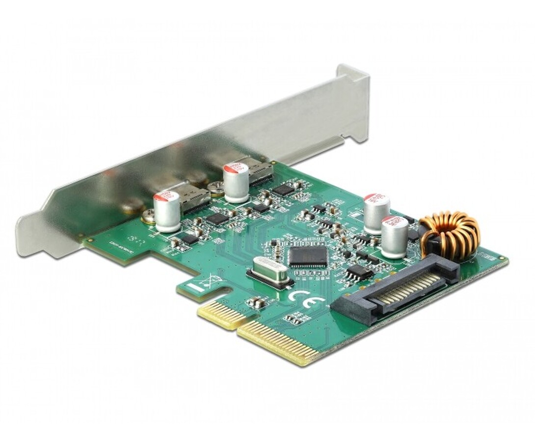 Karta PCI Express marki Delock rozszerza komputer o dwa szybkie porty USB 3.1, z czego jeden przeznaczony jest do użytku zewnętrznego, a drugi do montażu wewnętrznego. Dzięki chipsetowi Asmedia ASM1142 oferuje prędkość transmisji do 10 Gbps oraz zasilanie z PCI Express lub złącza 4-pinowego, zapewniając niezawodną obsługę nowoczesnych urządzeń USB.