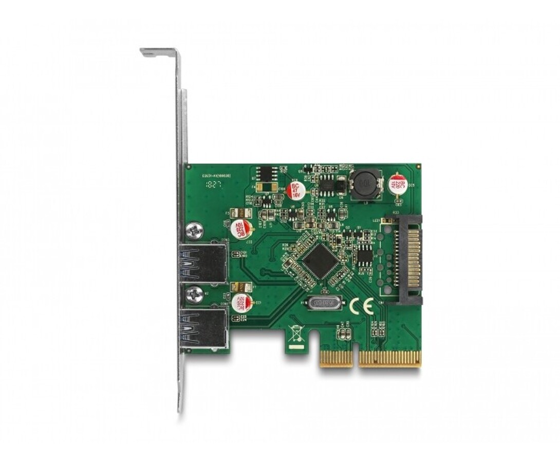 Karta PCI Express marki Delock rozbudowuje komputer o dwa porty USB 10 Gbps, umożliwiając szybki transfer danych z nowoczesnymi urządzeniami USB Typ-A. Chipset Asmedia ASM3142 gwarantuje stabilność, a zasilanie przez PCI Express lub SATA umożliwia obsługę urządzeń o wyższym poborze mocy. Karta obsługuje UASP i jest zgodna z xHCI 1.1.