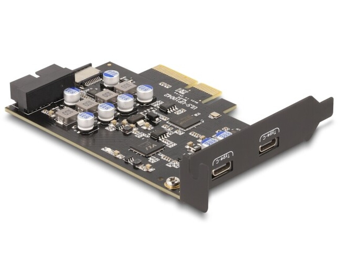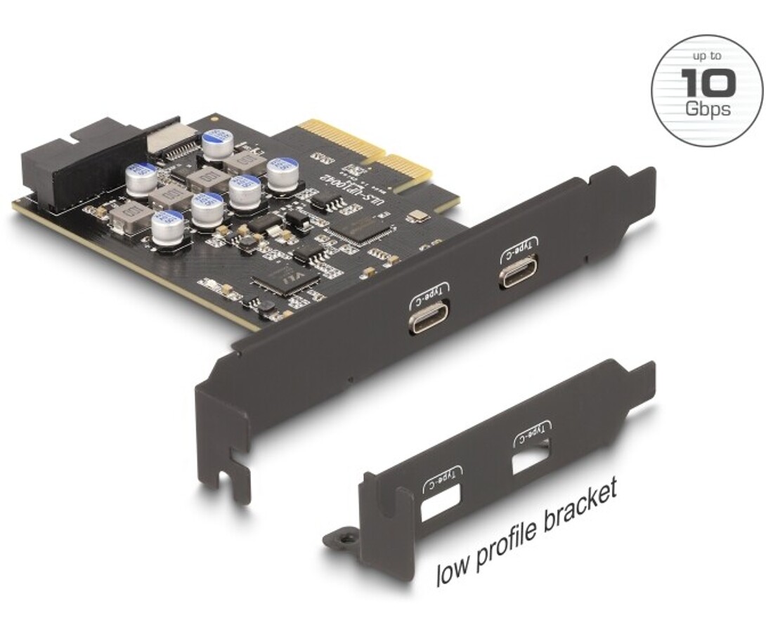 Karta PCI Express marki Delock z dwoma portami USB 3.2 Gen 2x2 Type-C oferuje ultraszybki transfer danych do 20 Gb/s oraz moc ładowania do 15 W na port. Dzięki chipsetom Asmedia ASM3242 i ASM1824 zapewnia stabilność, zgodność z UASP, xHCI 1.1 i pełną wsteczną kompatybilność z wcześniejszymi standardami USB.