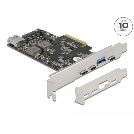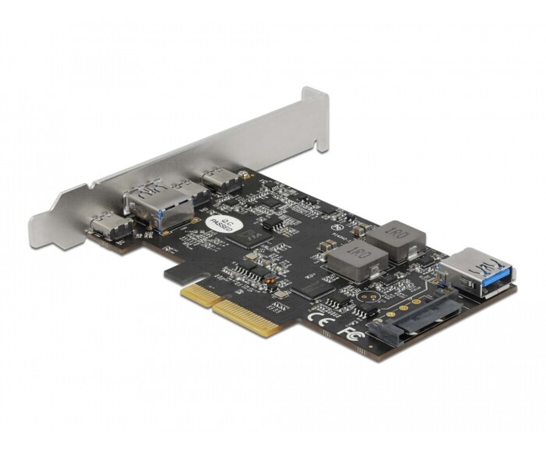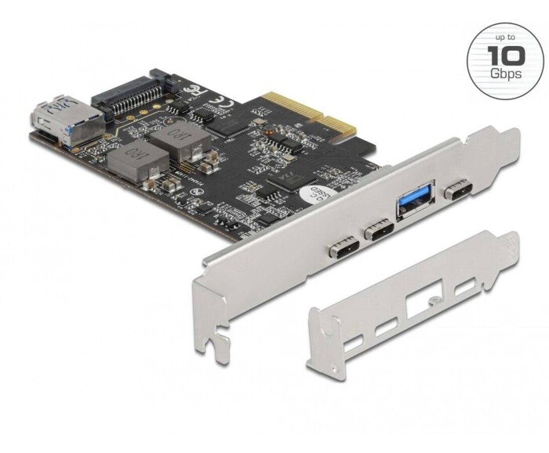 Karta PCI Express x4 do 3x USB-C + 2x USB-A SuperSpeed 10Gbps niskoprofilowa Delock 90060