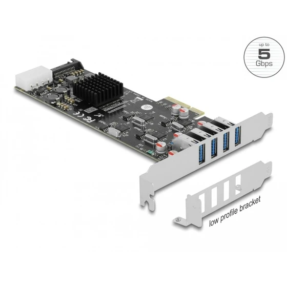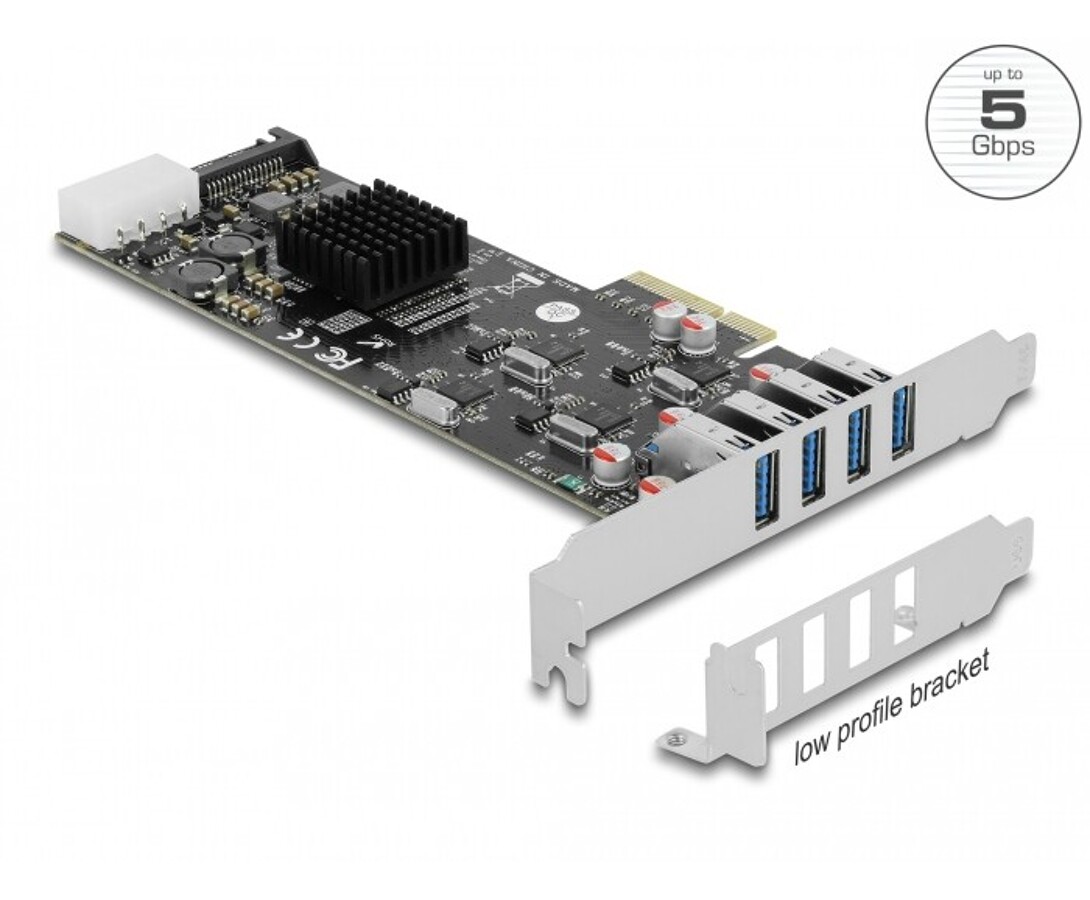 Karta PCI Express x4 do 4x zewn. USB-A SuperSpeed 5Gbps quad channel low profile Delock 89008