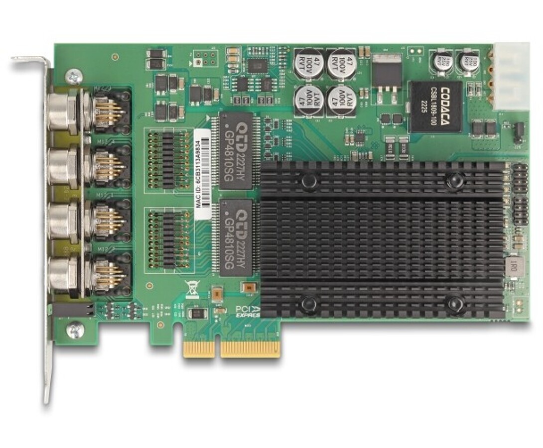 Karta PCI Express x4 na 4x M12 Gigabit LAN PoE+ Delock 86054