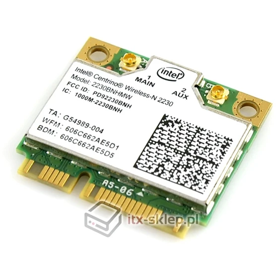 Karta sieciowa WiFi oraz adapter Bluetooth firmy Intel, model Intel Centrino Advanced N-2230 mini PCI-Express. Rozmiar karty to half-size (w niektórych płytach głównych wymagany jest adapter full-size -> half-size). Obsługuje standardy 802.11 b/g/n. Wśród wspieranych algorytmów szyfrowania i autentyfikacji znajdziemy: WPA, WPA2, AES-CCMP 128-bit, WEP 128-bit and 64-bit; 802.1X: EAP-SIM, LEAP, PEAP, EAP-FAST, EAP-TLS, EAP-AKA, EAP-SIM, PAP, CHAP, TTLS, TLS, GTC, MS-CHAP, MS-CHAPv, PCI, CISP, FIPS, FISMA. Obsługiwany tryb pracy Bluetooth: 2.1, 2.1+EDR, 3.0, 3.0+HS. Temperatura pracy: 0C-80C.