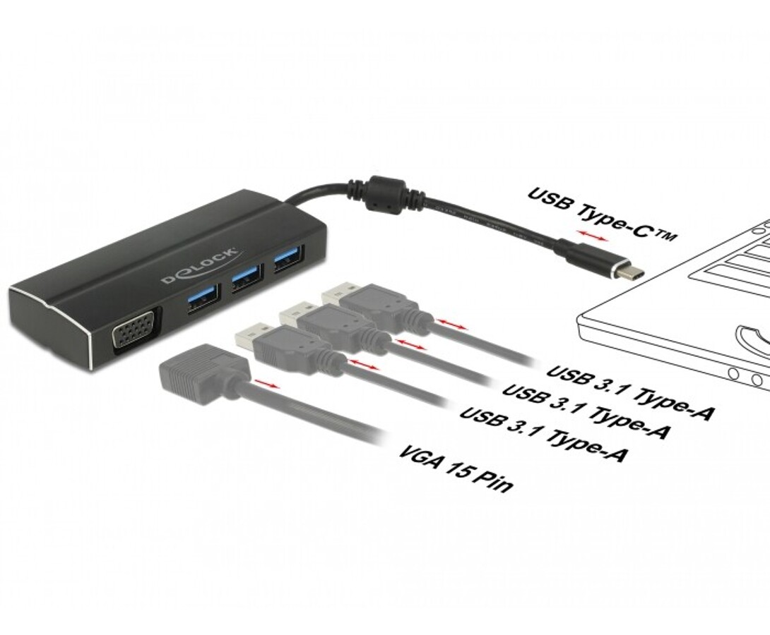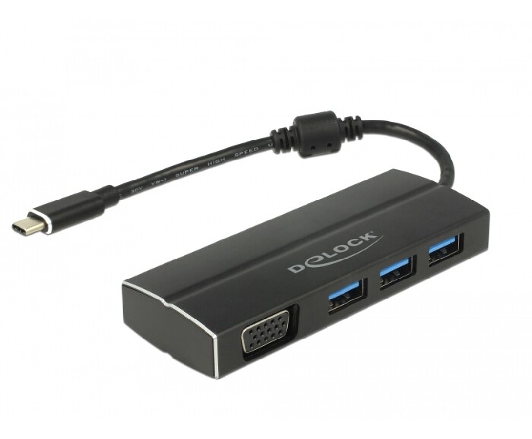Adapter USB 3.1 Gen 1 USB-C na 3x USB 3.0-A + VGA (DP Alt Mode) Delock 63932