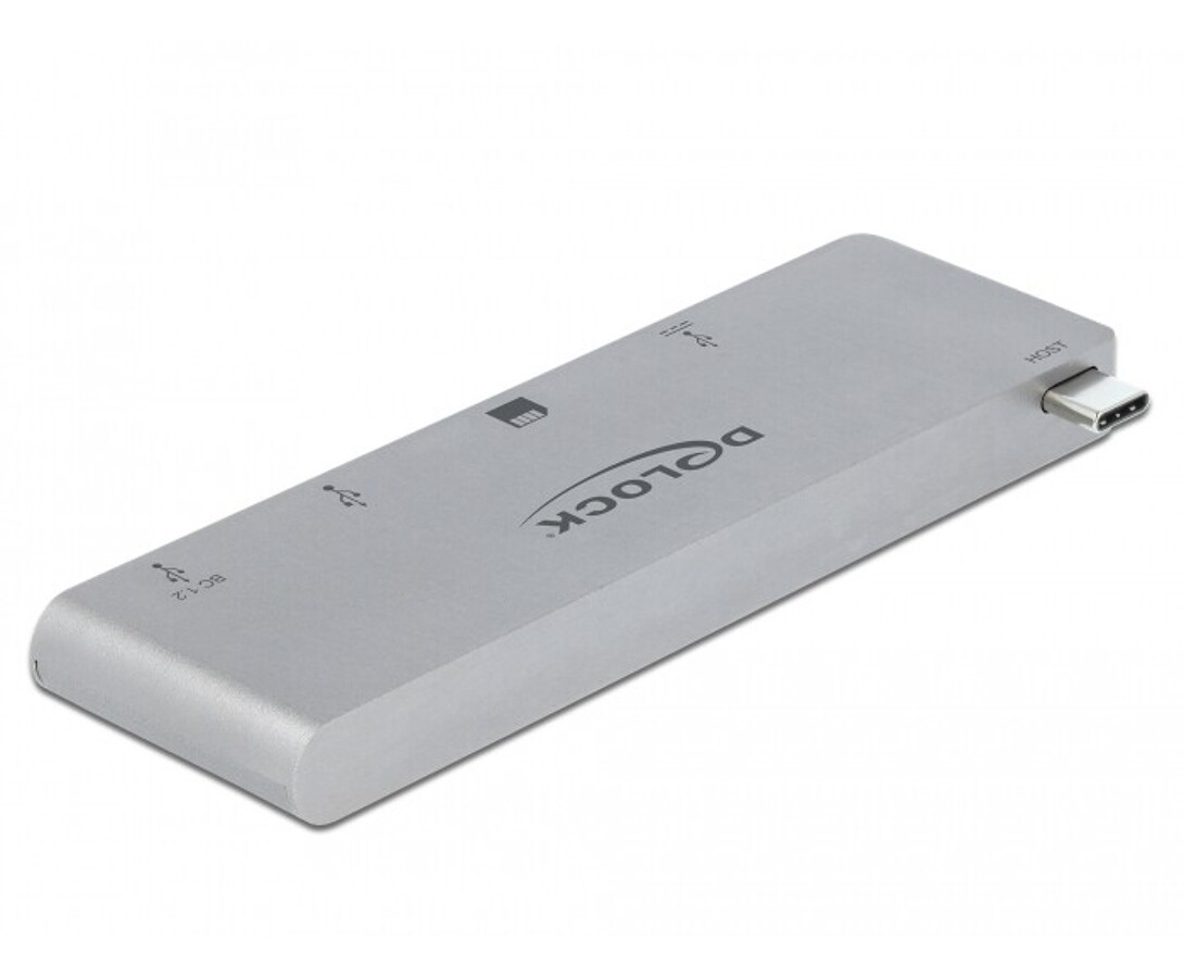 Hub 3-portowy + 2-slotowy czytnik kart do MacBook USB-C z PD 3.0 chowana przejściówka Delock 64078
