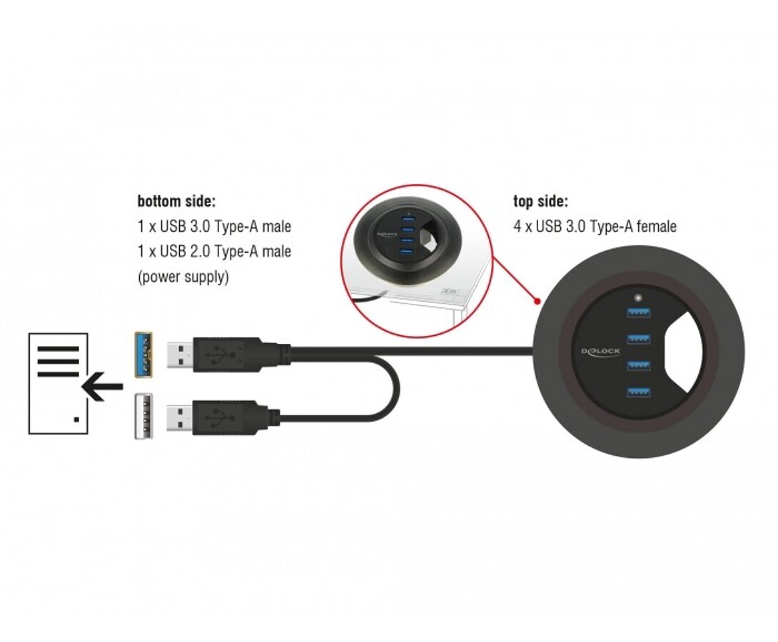 Hub biurkowy 4-portowy USB 5Gbps Delock 62868