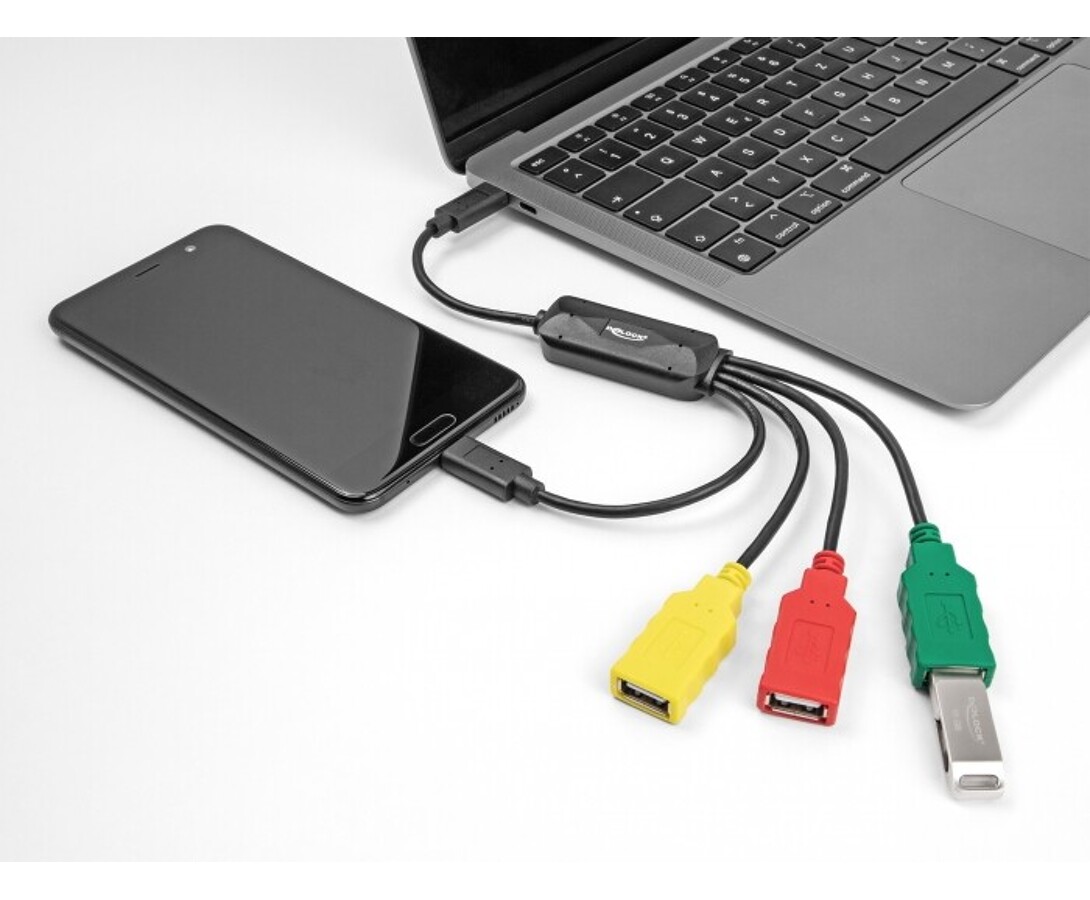 Hub kablowy USB 2.0 USB-C 3x USB-A żeński + 1x USB-C męski 4-portowy Delock 64203
