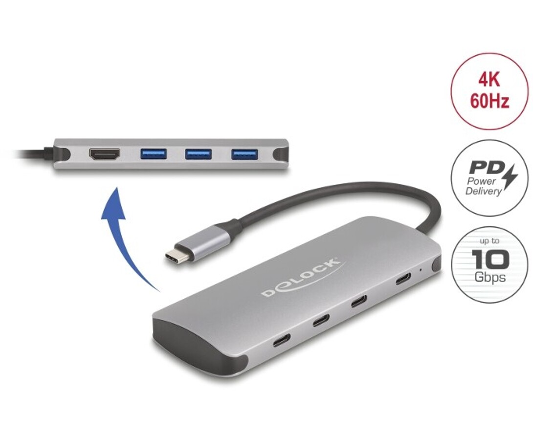 Hub USB 10Gbps 7x USB + HDMI 4K USB-C PowerDelivery 3.0 90W Delock 64323