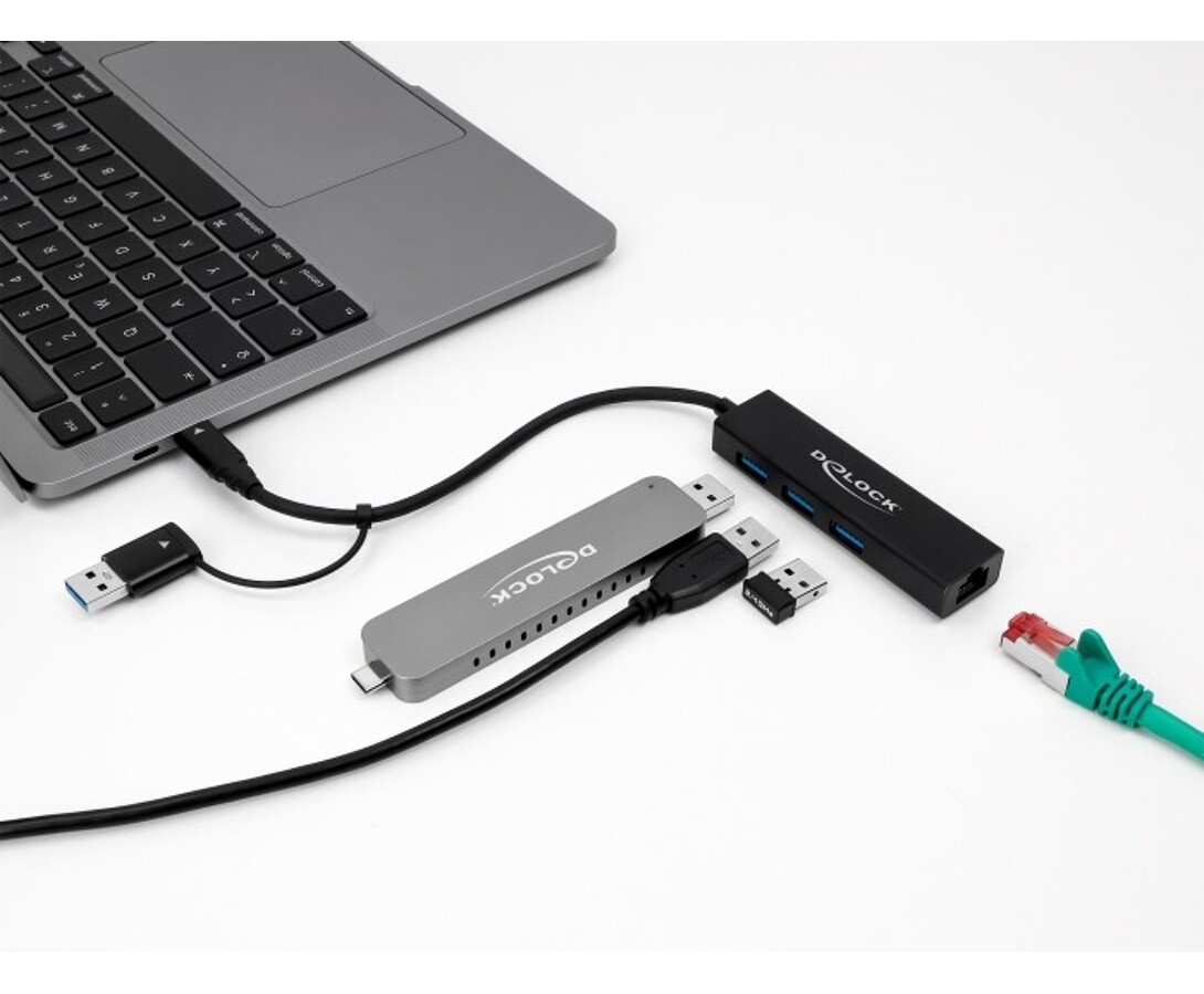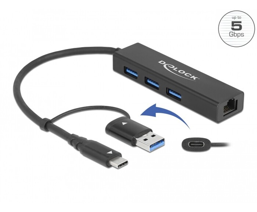 Hub USB 3.2 Gen 1 3 porty + Gigabit LAN USB-C lub USB-A Delock 64149