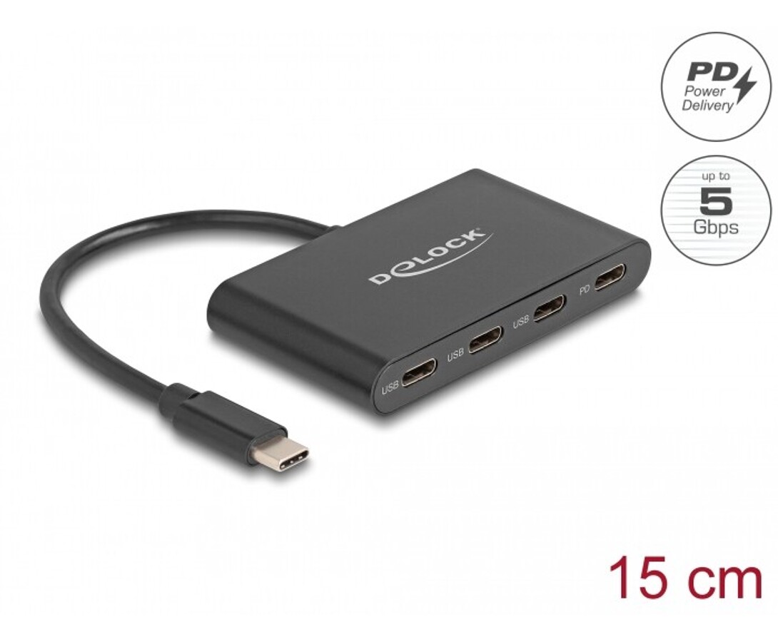 Hub USB 3.2 Gen 1 USB-C 3x USB-C + 1x USB-C PD 100W Delock 64174