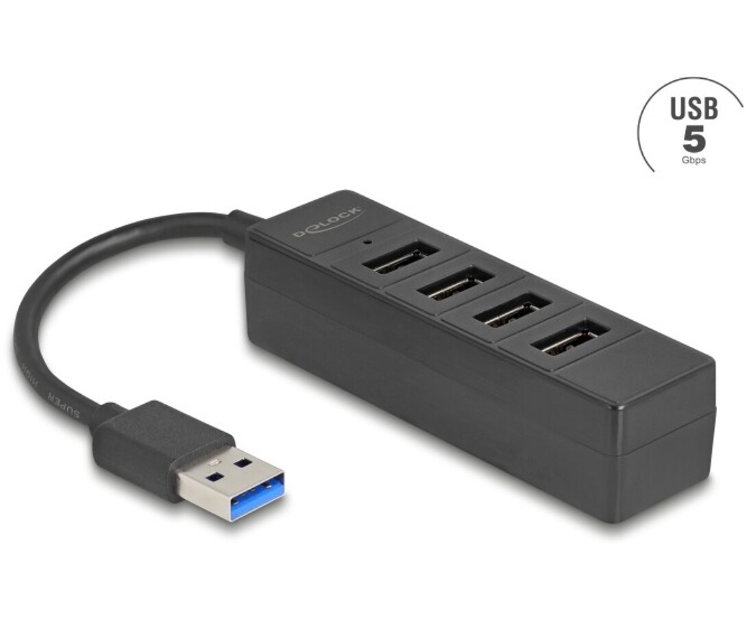 Hub USB 5Gbps 4-portowy 4x USB-A czarny Delock 64350