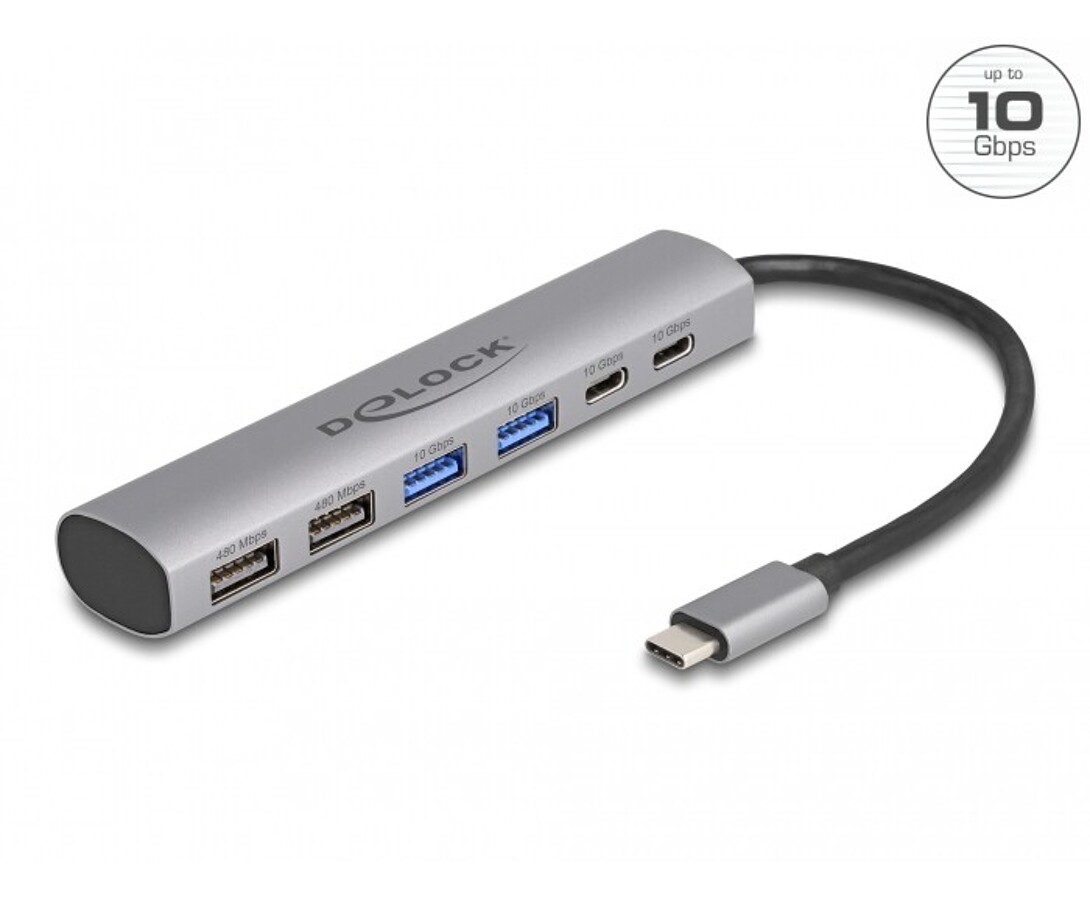 Hub USB 6-portowy 4x USB-A + 2x USB-C żeńskie Delock 64232