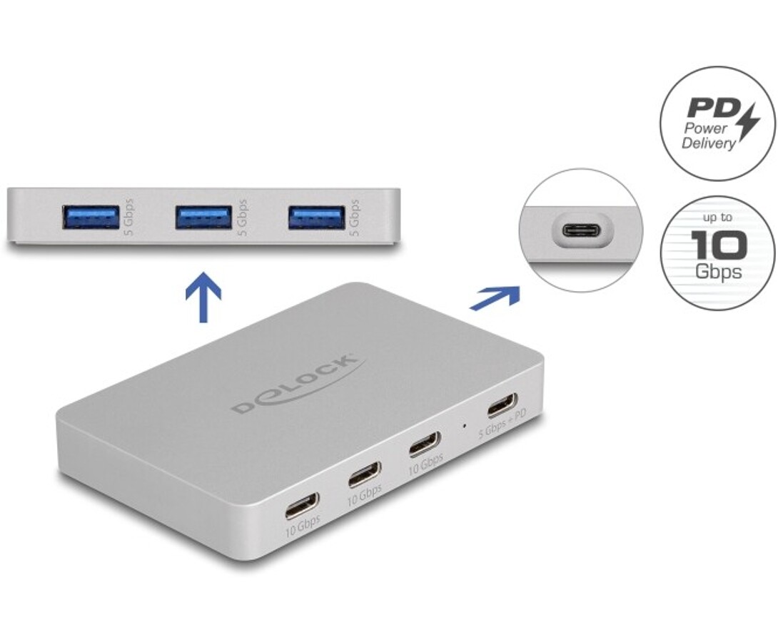 Hub USB 7-portowy 4x USB-C + 3x USB-A z funkcją Power Delivery 82W Delock 64279
