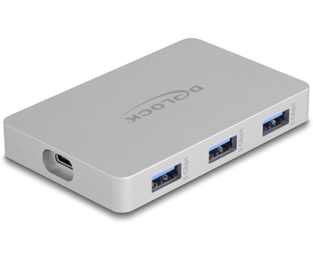 Hub USB marki Delock umożliwia podłączenie trzech urządzeń USB-C oraz ładowanie laptopa lub tabletu dzięki portowi Power Delivery o mocy do 100 W. Aluminiowa obudowa zapewnia trwałość i elegancki wygląd, a szybki transfer danych do 5 Gbps gwarantuje wydajną pracę. Idealny do zastosowań biurowych i mobilnych, działa w trybie Plug & Play.