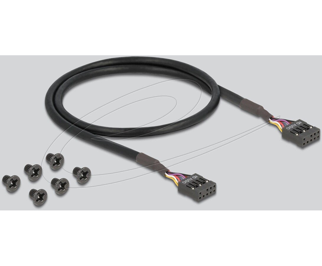 - Przewody połączeniowe: 1 x przewód USB z żeńską listwą 19-pinową (ok. 60 cm), 1 x przewód HD-Audio z żeńską listwą 9-pinową (ok. 62 cm)
