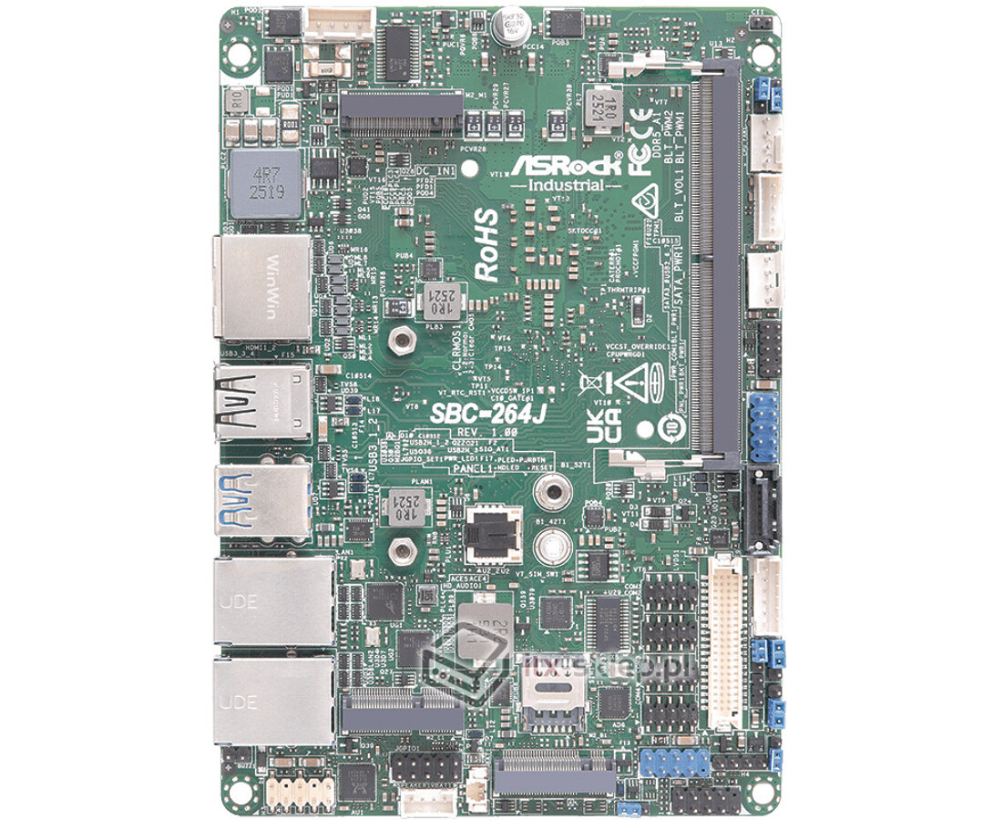 Przemysłowa płyta główna formatu 3,5" firmy ASRock o nazwie kodowej SBC-264J z zintegrowanym procesorem Intel Alder Lake-N, szerokim zakresie napięcia 9~36V DC i możliwością pracy w temperaturach -20C ~ 70C.