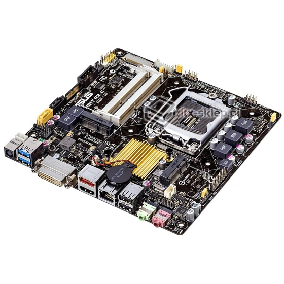 Płyta główna Asus H81T oferuje obsługę procesorów Intel Core i3 / i5 / i7 - dotyczy to modeli, których TDP nie przekracza 65W. Model Asus H81T, oferuje dwa zewnętrzne typy wyjść video: HDMI i DVI-I oraz jedno wewnętrzne: LVDS. Płyta główna Asus H81T wyposażona została w dwa sloty mini-PCI Express (1x half size, 1x full size). Pozwala to zamontować opcjonalnie drugą kartę PCI-Express, dzięki riserowi mini PCI-Express - PCI Express x1 dostępnemu w naszej ofercie. Na tylnym panelu znajdziemy ponadto dwa porty USB 3.0 oraz dwa USB 2.0. Wyprowadzone zostały również wyjścia line-out oraz mikrofonowe. Zaletą płyty Asus H81T jest zintegrowane gniazdo zasilania, w naszej ofercie wysokiej jakości dopasowany zasilacz 19V 4,74A firmy Seasonic.