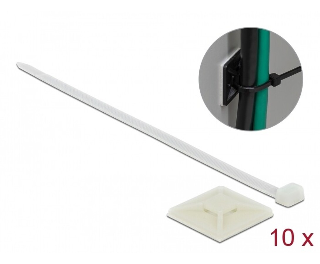 Zaczep do opaski kablowej 40 x 40 mm z opaską 250 x 7,2 mm biały Delock 18679