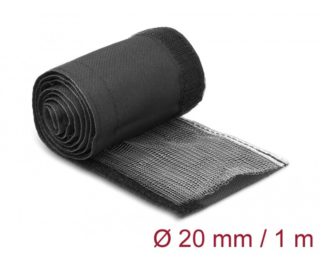 Rękaw pleciony EMC z rzepem odporny na ciepło 1 m x 20 mm czarny Delock 20841